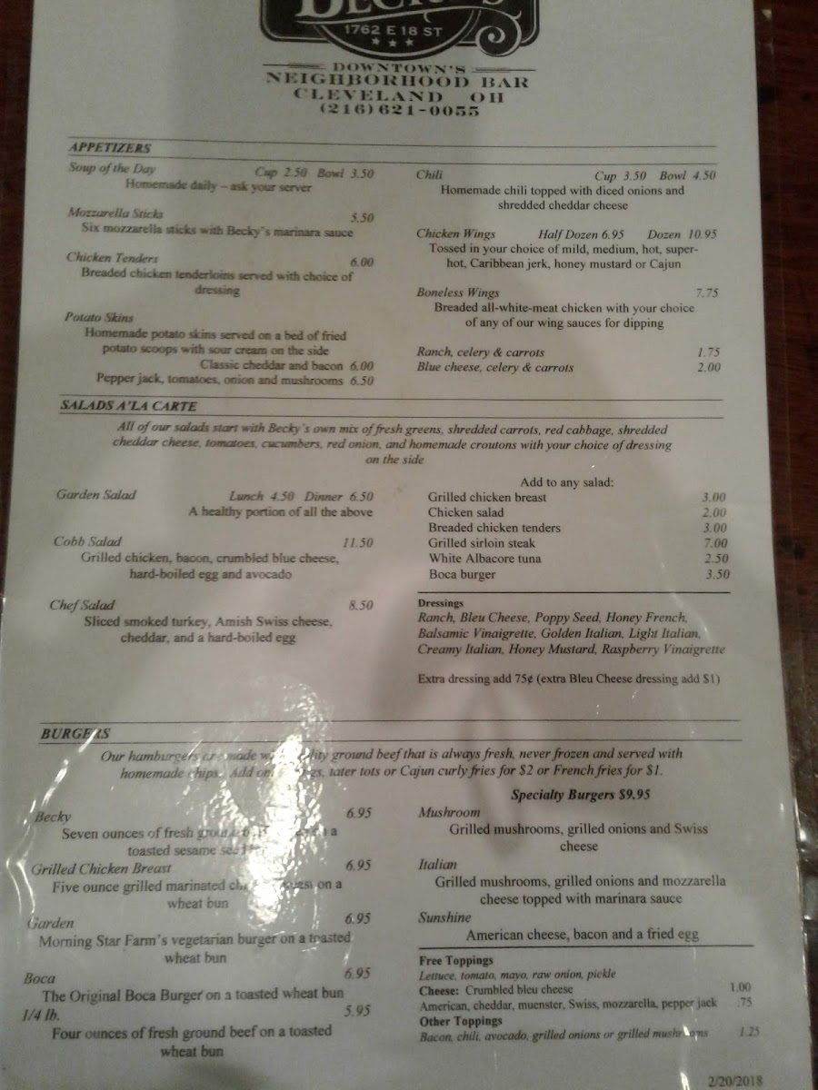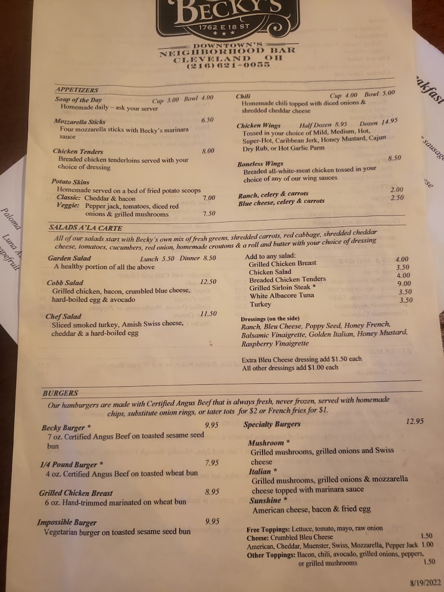 Welcome to Becky's, a hidden gem located at 1762 E 18th St, Cleveland, OH. This beloved establishment is where community spirit meets culinary delight, and it’s quickly becoming a must-visit spot for both locals and visitors alike. With a vibrant atmosphere reminiscent of an everyday drinker's bar, Becky's offers the perfect setting to unwind with friends over ice-cold drinks and hearty meals.